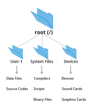- The tree is usually portrayed as inverted, and starts at what is most often called the root directory, which marks the beginning of the hierarchical file system and is also sometimes referred to as the trunk, or simply denoted by