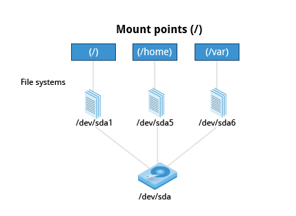 - One can think of a partition as a container in which a file-system resides, although in some circumstances, a file-system can span more than one partition if one uses symbolic links.